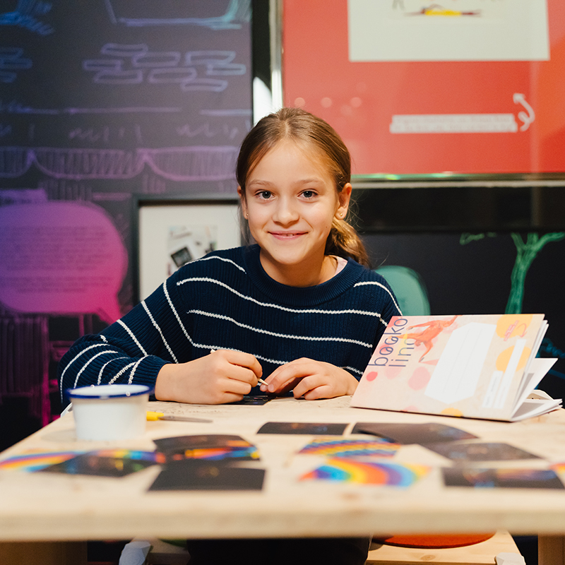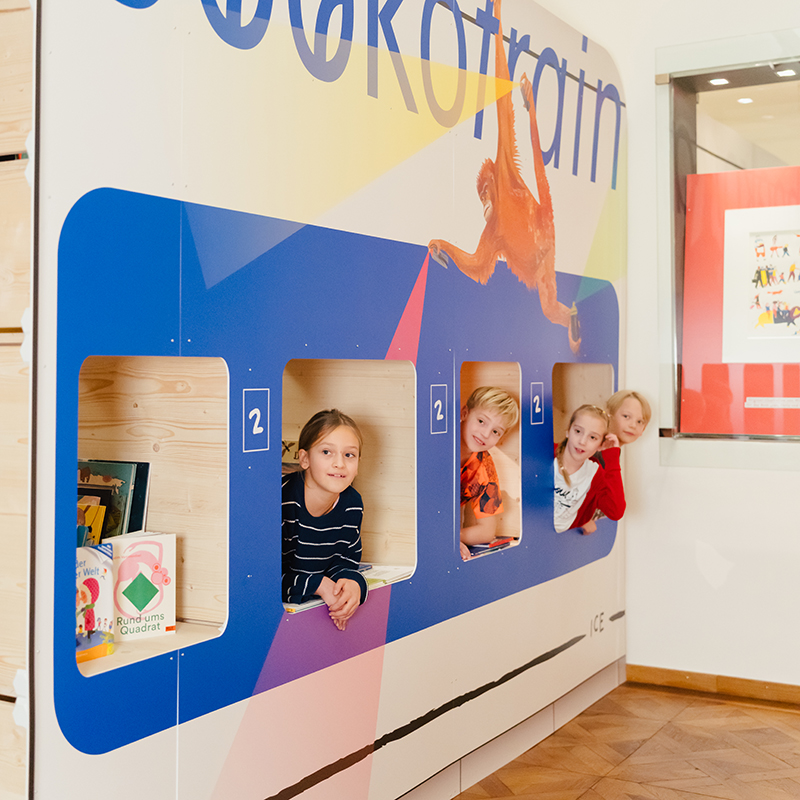 Steig ein in den bookotrain und entdecke das Bücher- und Bilderland! Färben, Falten, Kleben, Schneiden – erlebe, wie aus Ideen Bilder entstehen. In den Ateliers unserer Illustrator*innen kannst du kreativ werden, Pop-Ups gestalten und dein eigenes Bilderbuch füllen.